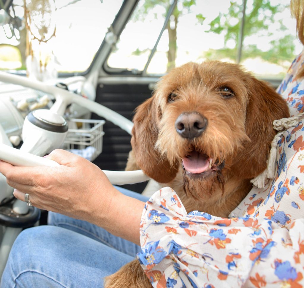 Mijn maatje en therapiehond “Rebel” kan naar wens met je meereizen.
